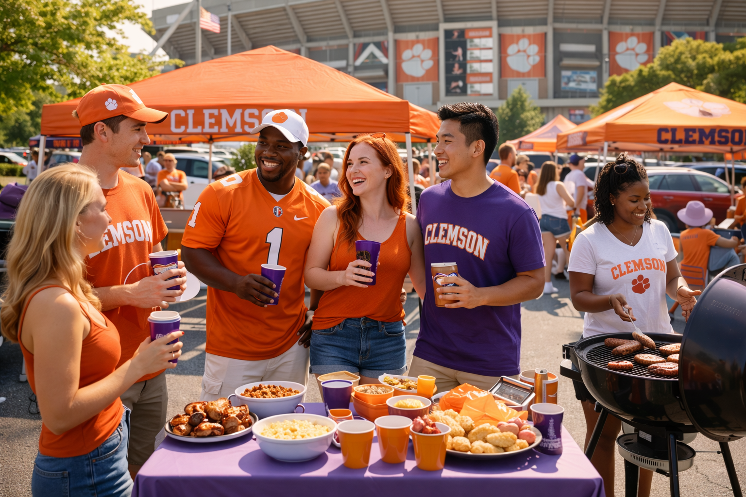 The best Anderson SC Clemson spring game tailgating experiences blend team spirit with Southern hospitality. Decorate your space with orange and purple, but don't go overboard – you want functional space for cooking and socializing, not a cluttered mess that's hard to navigate.